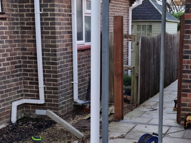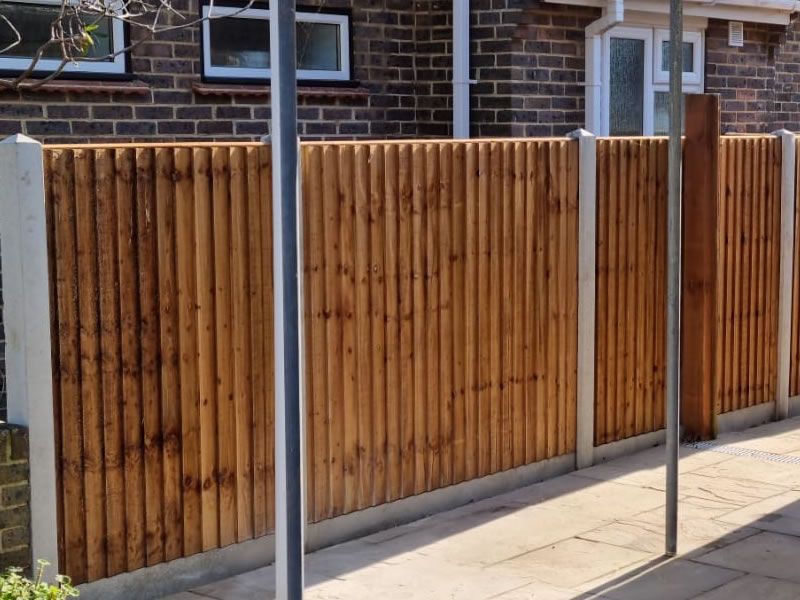 Here we removed the old perimeter fencing and replaced it with 5ft closeboard panels, using 7ft concrete slotted posts and 6" concrete recessed gravel boards.